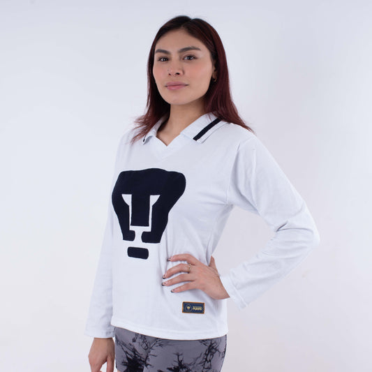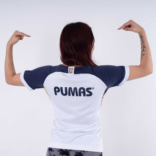 Blusa Dama PUMAS – Elegancia Deportiva en Blanco y Azul