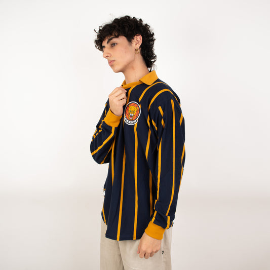 Precio habitual $ 921.00 MXNPrecio habitualPrecio unitario / por$ 800.00 MXNPrecio de oferta $ 921.00 MXNJersey Retro 40 Años – Dorado con Puma Azul Marino, Manga Corta