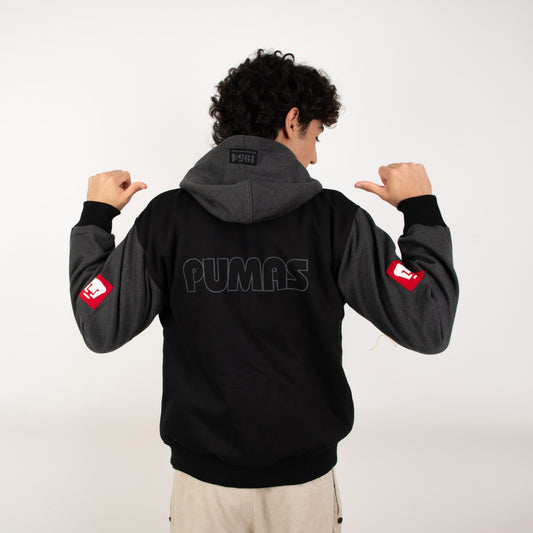 Sudadera Retro PUMAS 1954 – Negra y Gris, Estilo Clásico