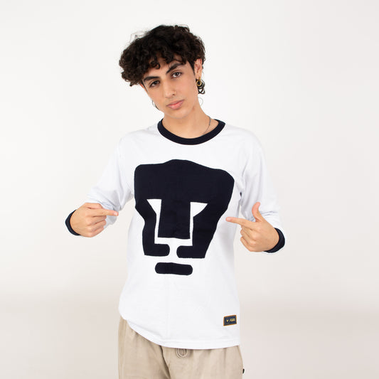 Blusa Retro PUMAS – Diseño Clásico en Blanco y Azul