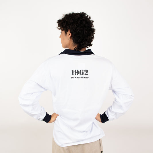 Jersey Retro UNAM 1962 – Elegancia Clásica en Blanco y Azul Marino